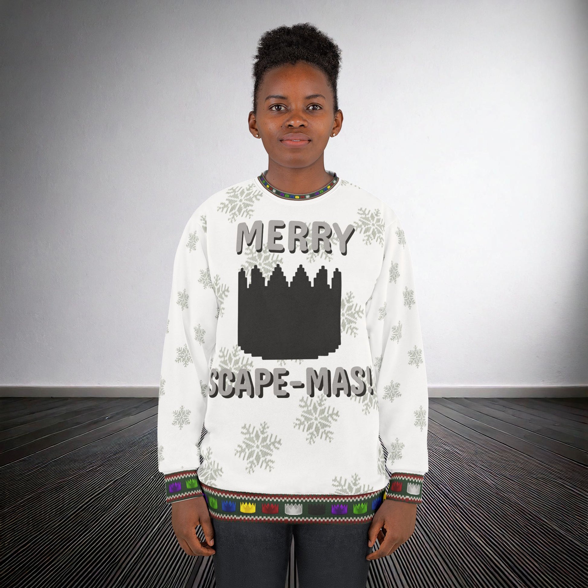 Level up your holiday style with the ultimate ugly Christmas sweater for every true gamer! From your brand, High Octane, this "Merry Scape-Mas!" sweatshirt blends classic holiday cheer with iconic gaming nostalgia.