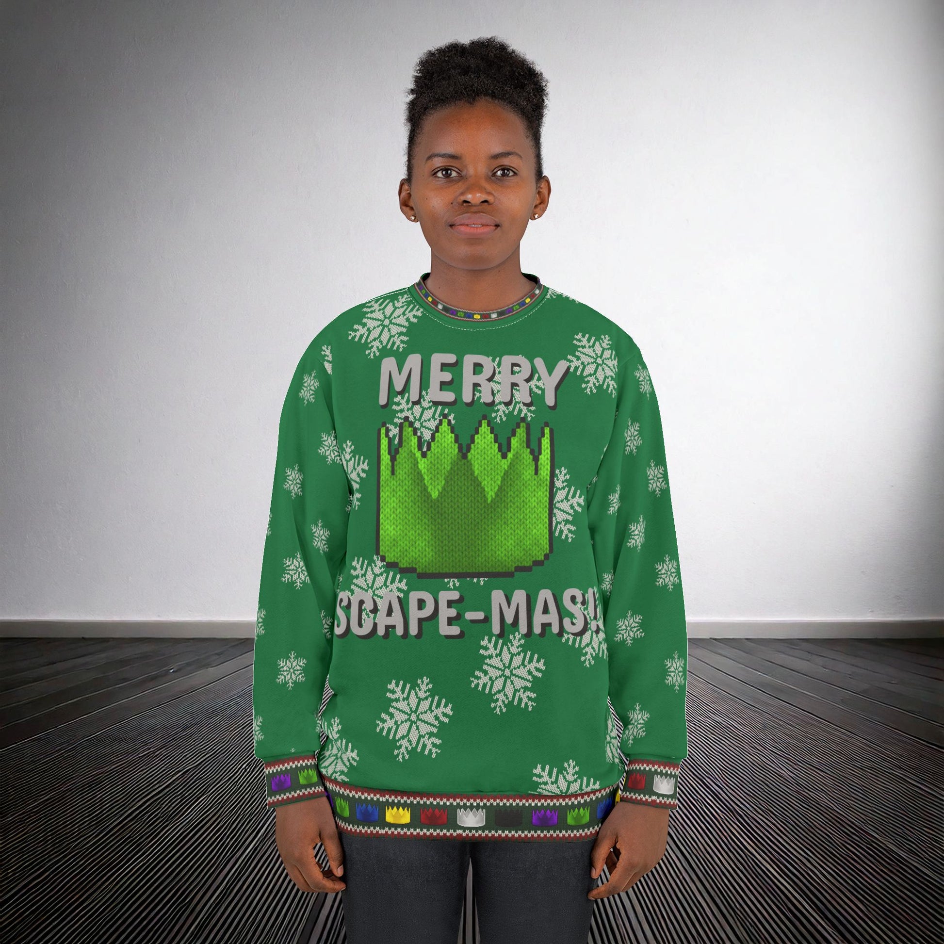 Level up your holiday style with the ultimate ugly Christmas sweater for every true gamer! From your brand, High Octane, this "Merry Scape-Mas!" sweatshirt blends classic holiday cheer with iconic gaming nostalgia.
