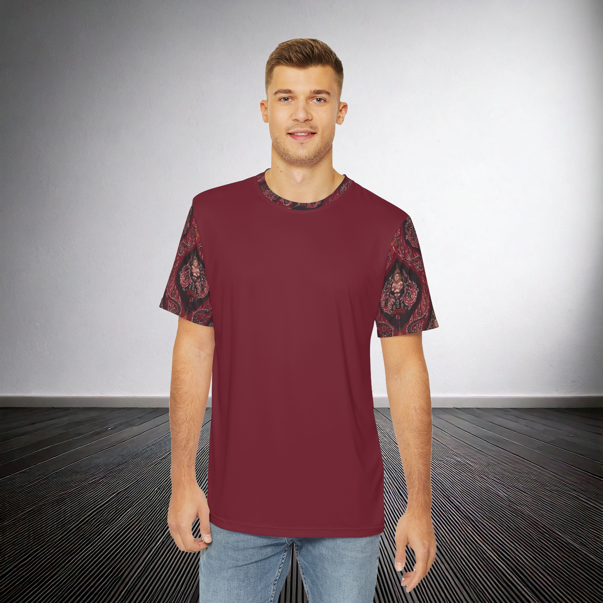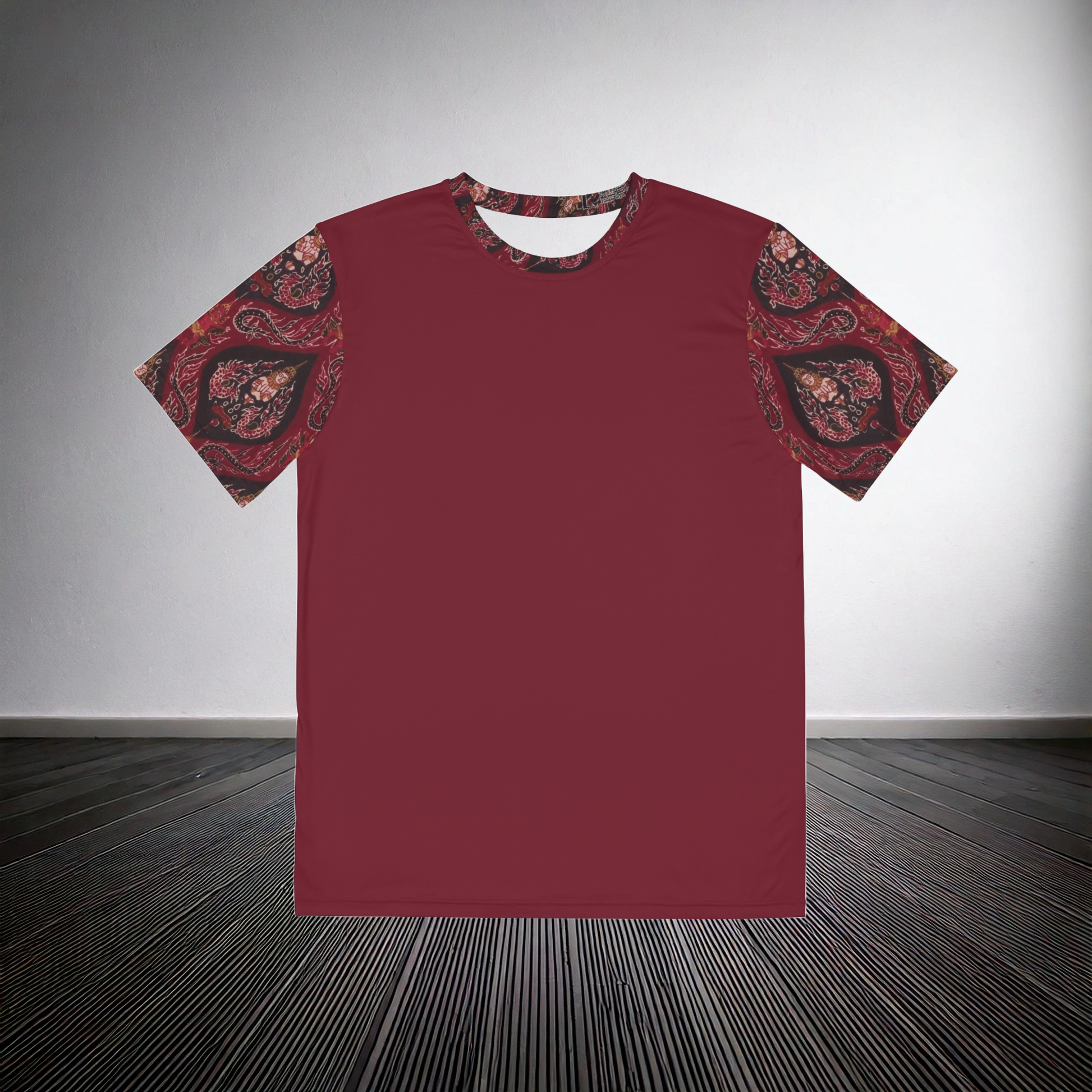 Vibrant print decorates both the sleeves and the collar of this tee. Made with 100% silky smooth, brushed polyester, these t-shirts are comfy, and designed to be shrink and fade-resistant. All panels are cut and sewn together by skilled artisans for picture-prefect printing and excellent fit.